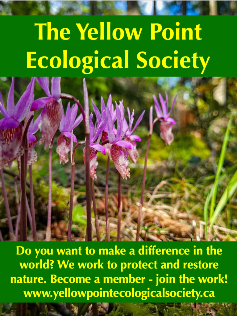 Do you care about nature, ecology, and the beauty of the Yellow Point and Cedar area where we are so blessed to live? If your answer is YES, welcome to Y.E.S. – the Yellow Point Ecological Society, founded in 2017 by local residents.