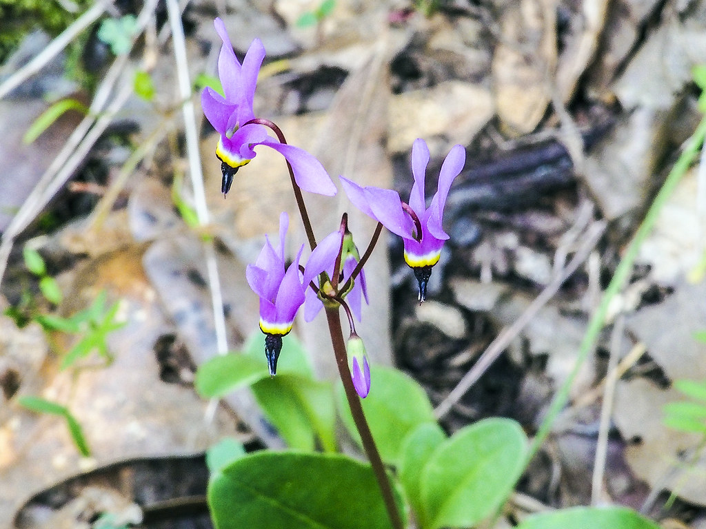 Habitat/Uses: Found at low to mid-elevations, these delicate plants can be found in grasslands and woodlands, and at forest edges. They prefer dry soil, and can be found in full sun and partial shade. Shooting stars evolved to attract certain species of solitary bees as well as bumblebees, who collect their pollen for their young. As shooting stars are a native species, they can be cultivated in native plant gardens, but it can take years to form a colony. Collect seeds in late spring, and plant in fall or early spring. Alternatively, bulblets can be divided very carefully and transplanted after flowering.