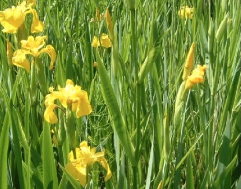 These are the ones I easily recognize so far: Yellow Flag Iris (left), Daphne (top right), Broom (lower right).