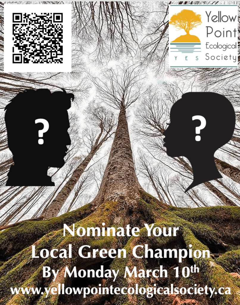 In partnership with Take 5 Magazine, we – the Yellow Point Ecological Society (YES) – are launching a quest to find our Green Champions, and give them the recognition they deserve in the April issue of Take 5.