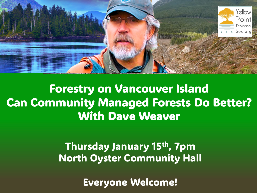 Our guest speaker Dave Weaver is a retired forester, and past president of the Beaufort Watershed Stewards. He is an active member of the Vancouver Island Private Managed Forest Action Alliance, an alliance of 30 environmental groups which are advocating for change in the Private Managed Forest Lands.