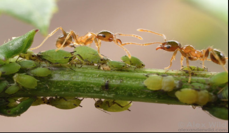 Being quite scatological (a word I learned while taking my BA), Jonathan Swift would have been fascinated to know that aphids drink a kind of Milk of Paradise and they poo a kind of honeydew. Ants, having quite the sweet tooth, unabashedly lick up all the poo the aphids produce and encourage them to make more by herding them to more succulent spots. Ants have also been known to protect their herds of aphids by caring for them in their ant-homes during the winter and bringing them out to graze again in the spring, like any good farmer.