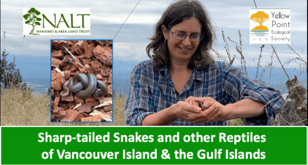 Here is the video from Carrina Maslovat’s and Laura Matthias’ presentation https://youtu.be/H7_HeeEQlLE. If you have an area of sun-filled Garry oak meadow on your land, and are interested to set up artificial cover object (black asphalt shingle) to observe if you have these tiny snakes (see below) on your land, please contact Linda Brooymans at the Nanaimo area Land Trust. stewardship@nalt.bc.ca The video explains all about it.