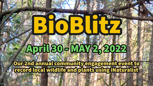 For help downloading or using the iNaturalist ap, attend our webinar on April 26th (more information on this coming soon). Experts on flora and fauna in the area and on BioBlitzes will be there to pique your interest and answer your questions.